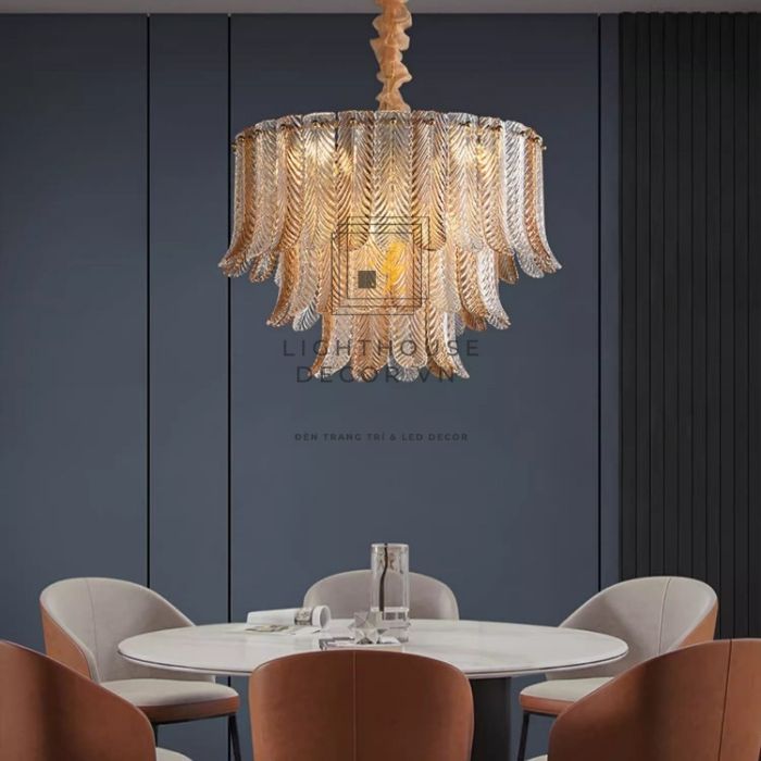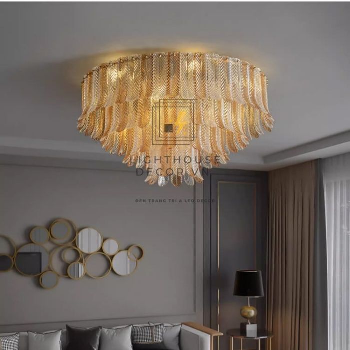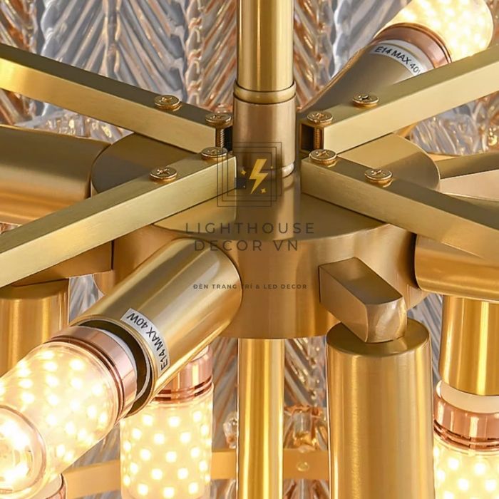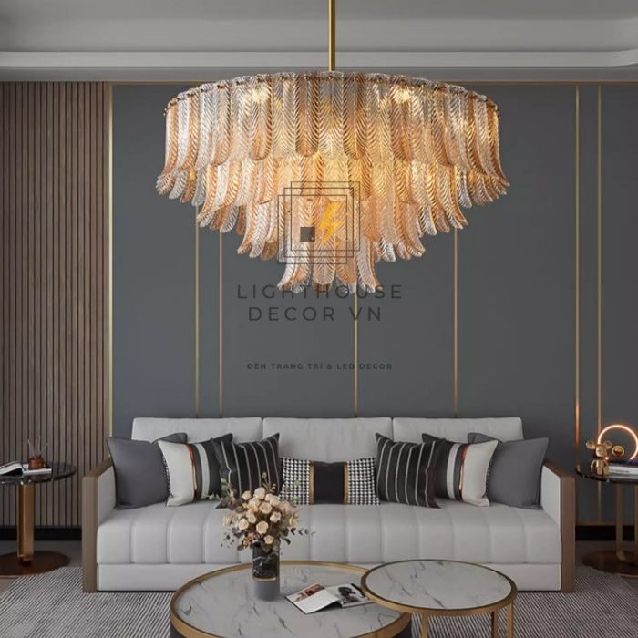 Các đầu bóng được bố trí cân đối, cho ánh sáng lan tỏa đều, không gây chói mắt, giúp phòng khách luôn ấm cúng và dễ chịu. Đèn vừa đảm nhiệm chức năng chiếu sáng chính, vừa đóng vai trò là tâm điểm trang trí, nâng tầm giá trị tổng thể của căn phòng.