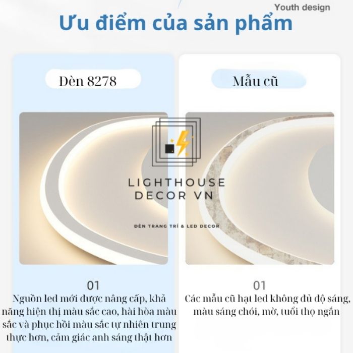 Thiết kế mỏng gọn chỉ 60mm giúp đèn ôm sát trần, tạo cảm giác không gian cao và thoáng hơn, rất phù hợp với nhà phố và căn hộ chung cư.