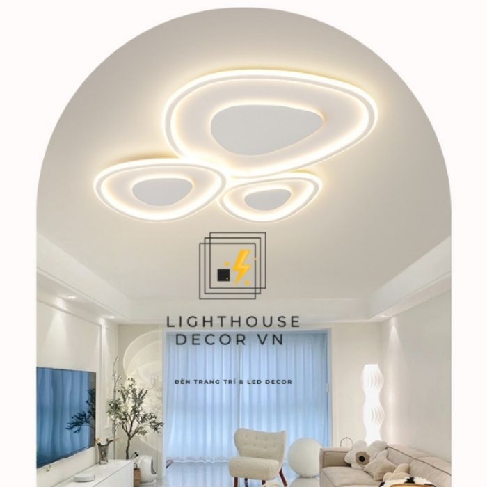 Điểm đặc biệt của đèn ốp trần LED phòng khách hiện đại hình đá cuội WOPT8278 nằm ở kiểu dáng bo tròn bất đối xứng, tạo hiệu ứng thị giác nhẹ nhàng, giúp trần nhà trở nên sinh động hơn mà không gây rối mắt. Thiết kế này đặc biệt phù hợp với các căn hộ hiện đại, chung cư cao cấp, phòng khách phong cách Bắc Âu hoặc Minimalism.