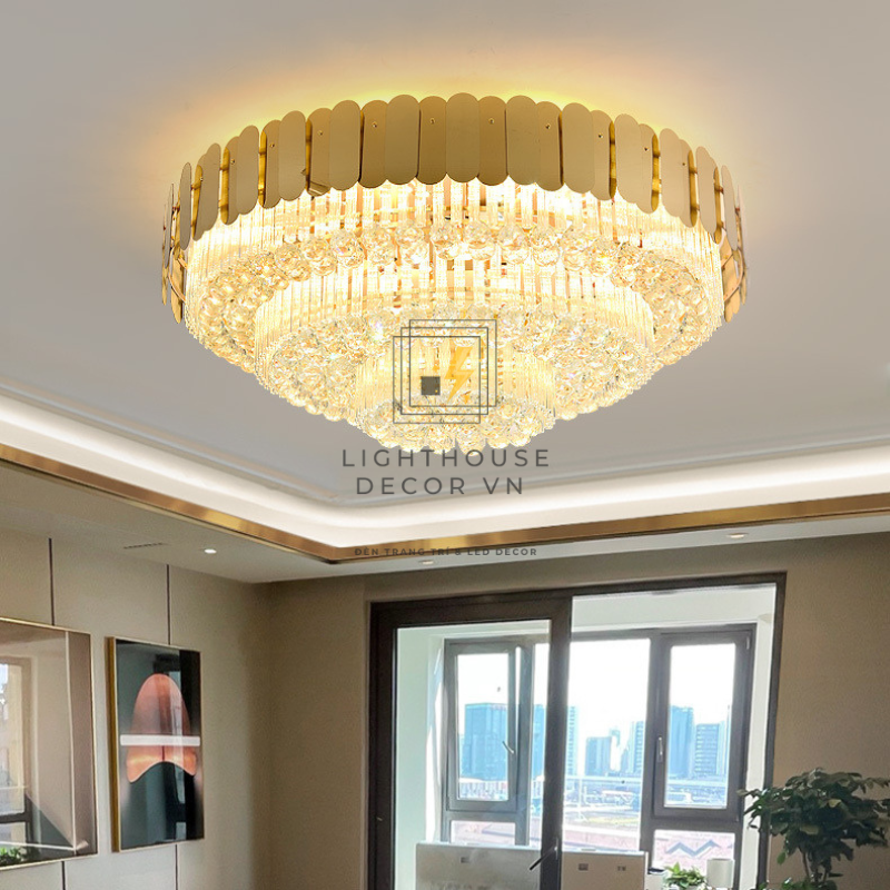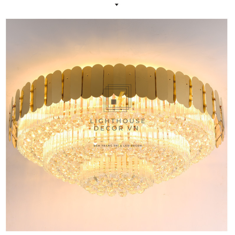 Đèn ốp trần pha lê phòng khách sang trọng WOP89408 – biểu tượng của vẻ đẹp hiện đại pha lẫn nét xa hoa cổ điển. Thiết kế pha lê tầng cao cấp kết hợp khung hợp kim mạ vàng tinh xảo, mang đến ánh sáng lung linh như dòng thác kim cương, giúp không gian phòng khách, biệt thự hay sảnh lớn trở nên đẳng cấp và ấm cúng