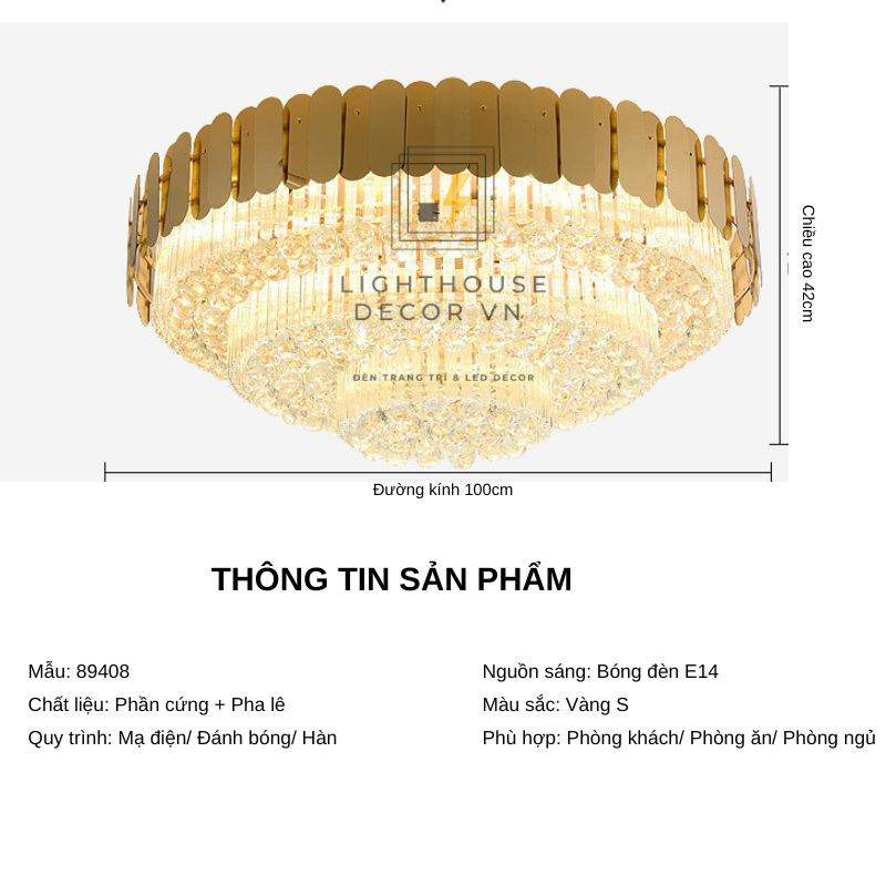 Với ánh sáng pha lê trong suốt, mềm mại, đèn ốp trần pha lê phòng khách Đèn ốp trần pha lê phòng khách sang trọng WOP89408giúp tôn lên vẻ đẹp của không gian nội thất.