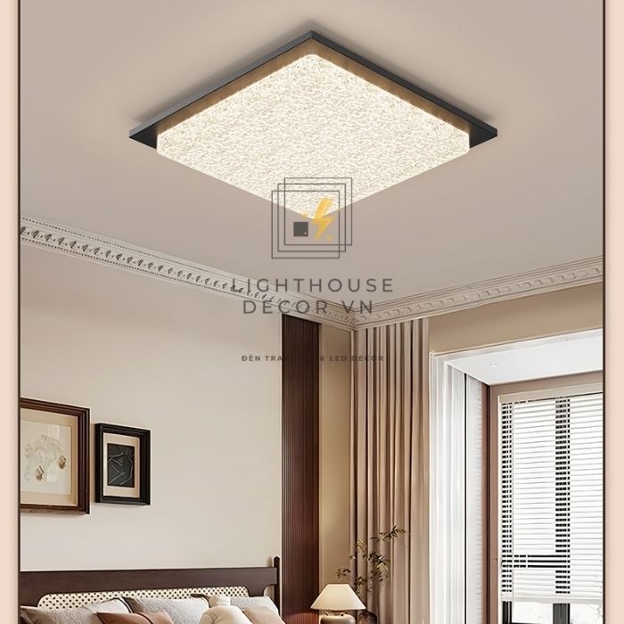Dựa trên hình ảnh thực tế, đèn ốp trần phòng khách hiện đại đơn giản bảo vệ mắt WOPT5381 sở hữu thiết kế dạng khối phẳng, ôm sát trần với các đường nét vuông vức, gọn gàng. Kiểu dáng này giúp đèn phù hợp với trần thấp, không tạo cảm giác nặng nề, đồng thời mang lại vẻ đẹp tinh tế, hiện đại cho tổng thể không gian.