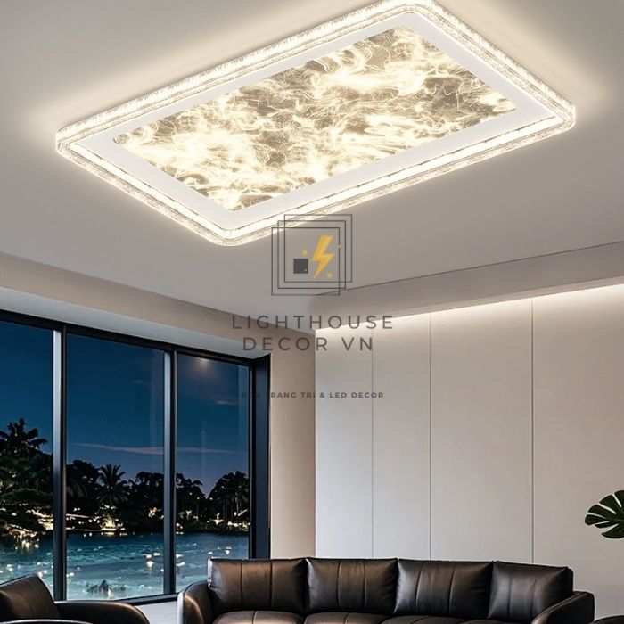 Điểm gây ấn tượng mạnh của đèn ốp trần phòng khách hiện đại phong cách Ý bảo vệ mắt WOPT5382 nằm ở thiết kế hình khối vuông và chữ nhật rõ nét, kết hợp viền LED phát sáng đều bao quanh. Kiểu dáng phẳng, độ dày chỉ 7cm giúp đèn đặc biệt phù hợp với trần thấp, căn hộ chung cư, nhà phố hiện đại hoặc không gian theo phong cách Ý – minimal – luxury.